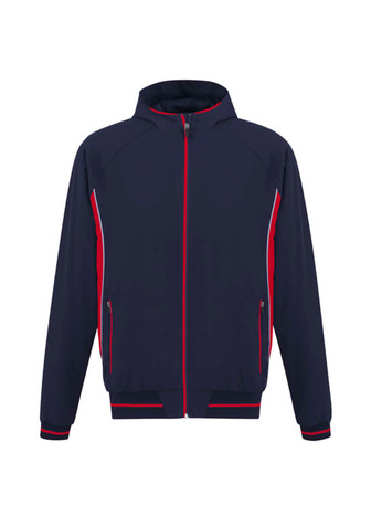 Features: Attached hood, two-tone zip, reflective piping for visibility