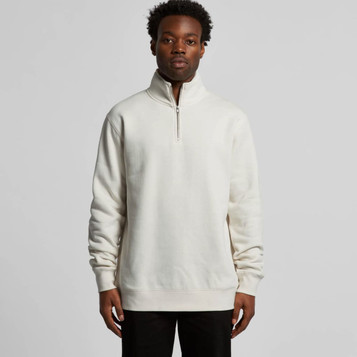 Elevate your casual wardrobe with the AS Colour Stencil Half Zip Crew. This mid-heavy weight sweatshirt boasts a regular fit, crafted from 80% cotton and 20% recycled polyester anti-pill fleece. Featuring a mock neck, silver SBS zip, and ribbed cuffs/hem, it's pre-shrunk for enduring comfort.